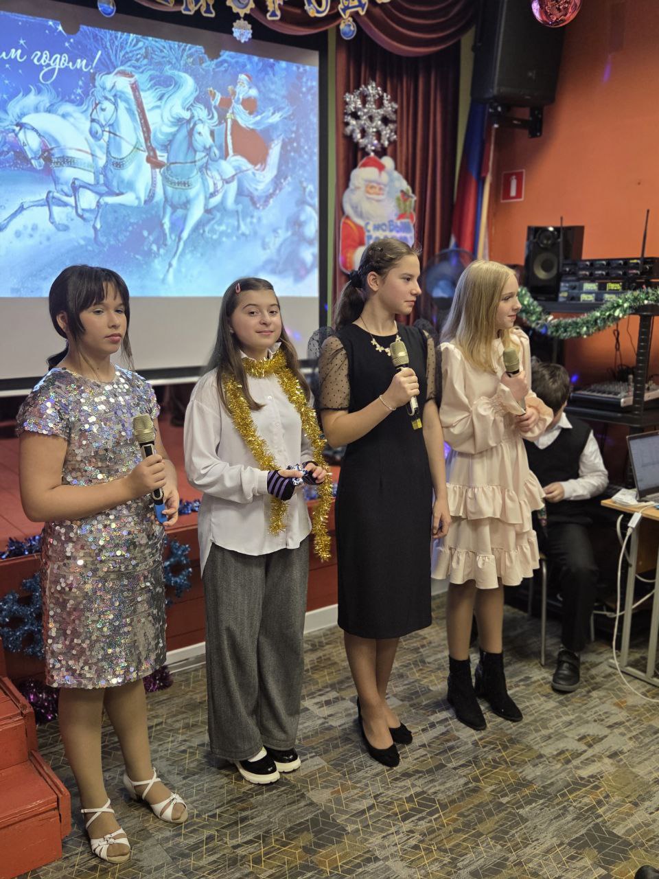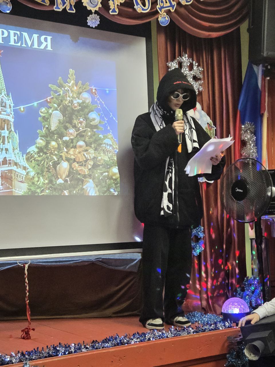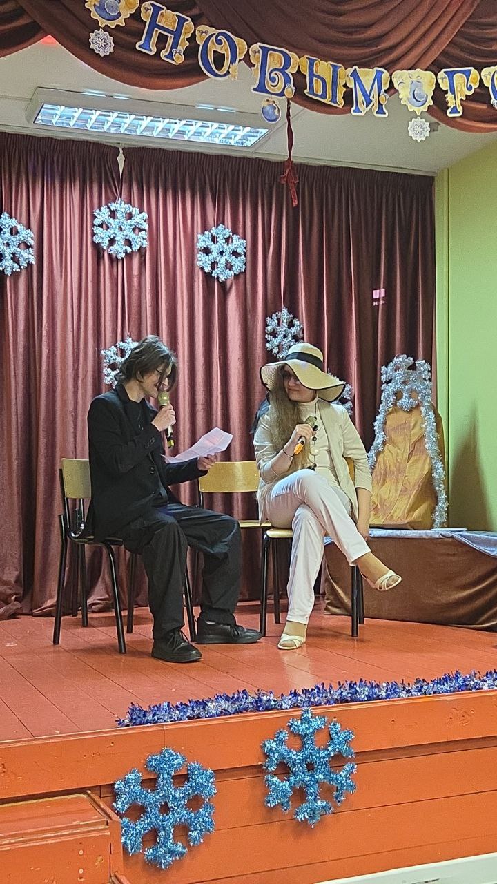 Итак, все по порядку. Вся интрига была в том, что дети снимали фильм. Первыми выскочили на сцену 2 друга - Алексей и Дмитрий. Хорошими стихами они поздравили всех с наступающим Новым годом.